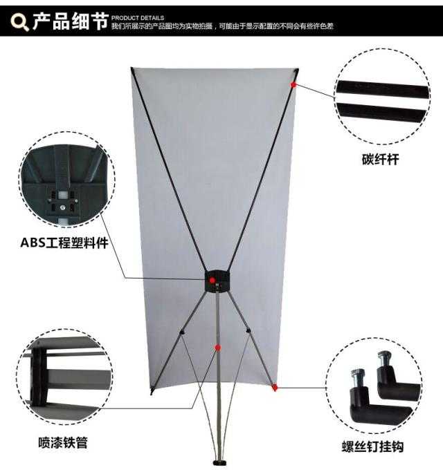 X展架用途和易拉寶相同,是公共場所、活動集會或商家店鋪的一種廣告宣傳品,也是婚禮慶典的展示品,小巧精致方便攜帶,可拆裝,可更換畫面,長時間反復使用。經(jīng)濟型X展架,畫面采用絲網(wǎng)印刷方式,整體構件,無需組裝,設可調(diào)角度支架,靈活多變,體積小、款式多樣。